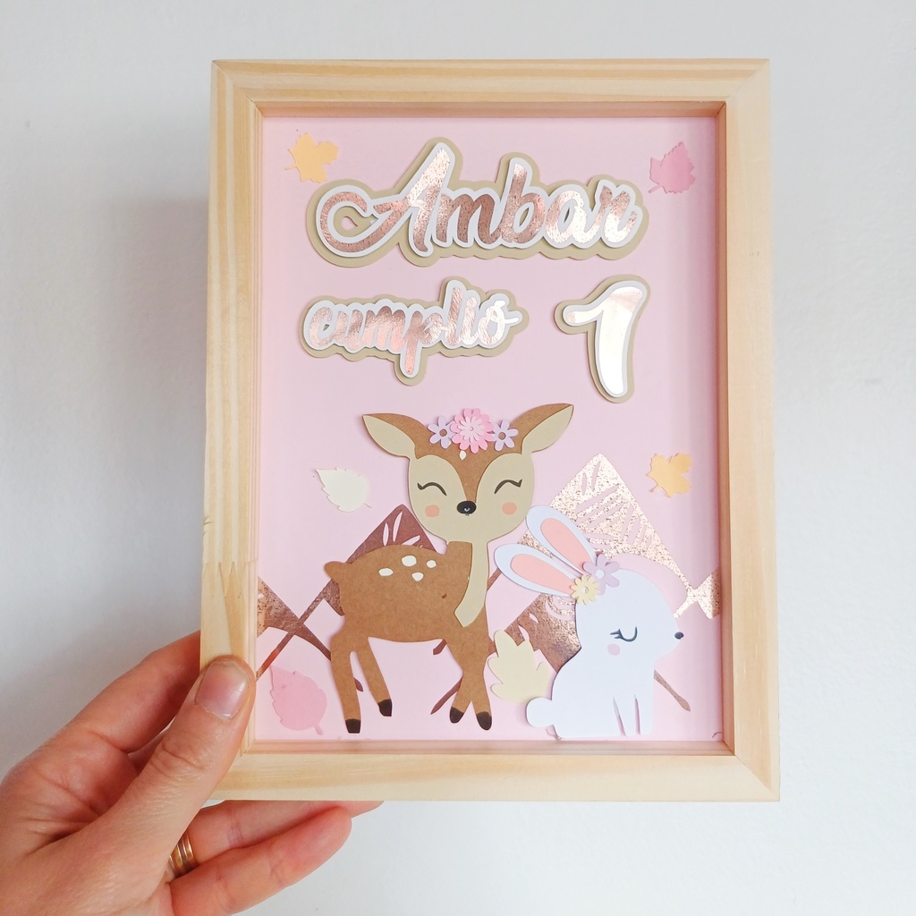 >> Cuadrito tipo Box de pino personalizado con apliques temáticos. Medidas: 21 x 15 cm.