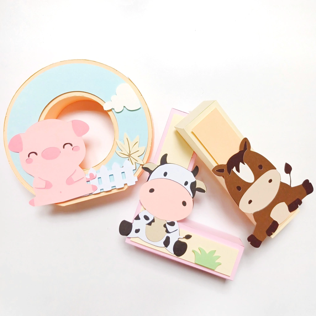 Son realizados en papeles de 180 a 200 gr segun diseño, y los colores se eligen en base a la temática. Se trabaja SIEMPRE sobre los frentes, los cuales llevan apliques acorde a la temática elegida.