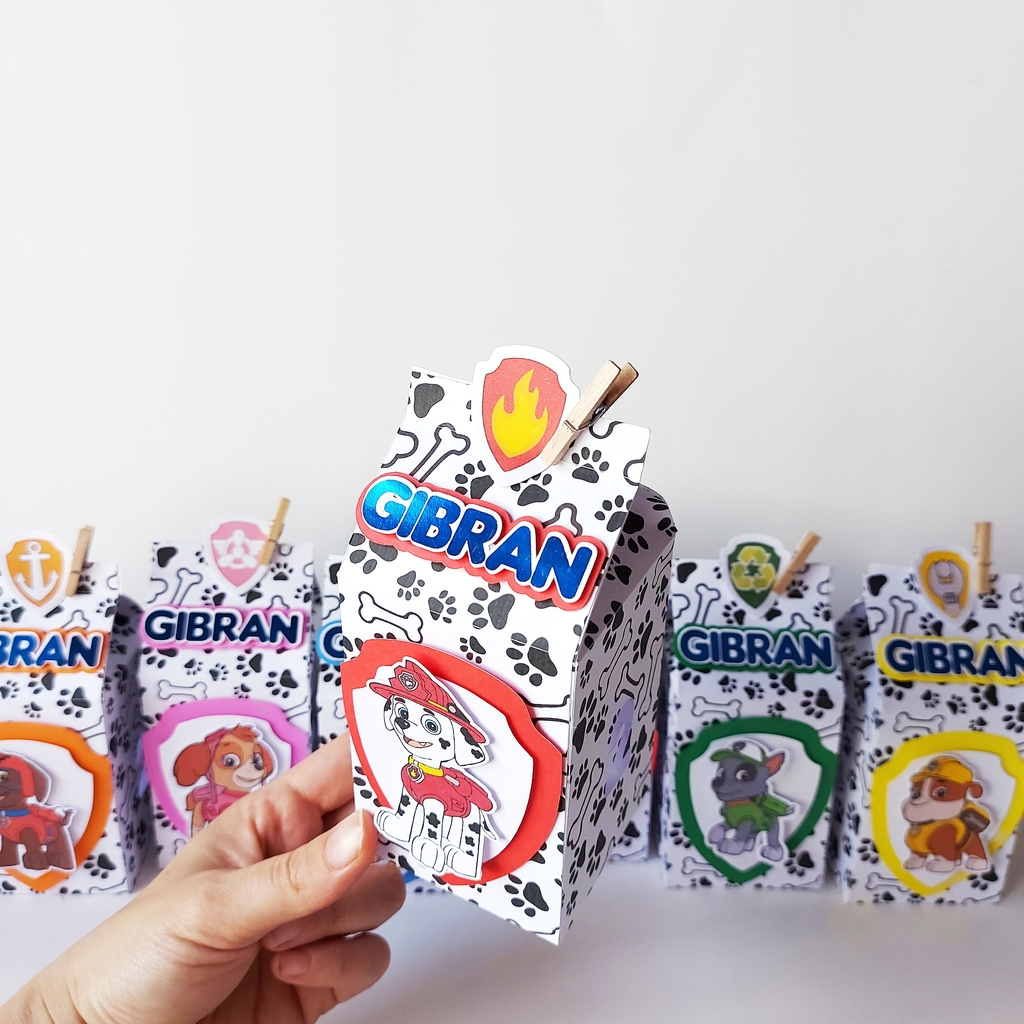>> CAJAS MILK. Llevan apliques en frente, acorde a la temática elegida, y en frente superior inclinado con el NOMBRE (personalización) En laterales llevan calados con el número (AÑOS QUE CUMPLEN).
