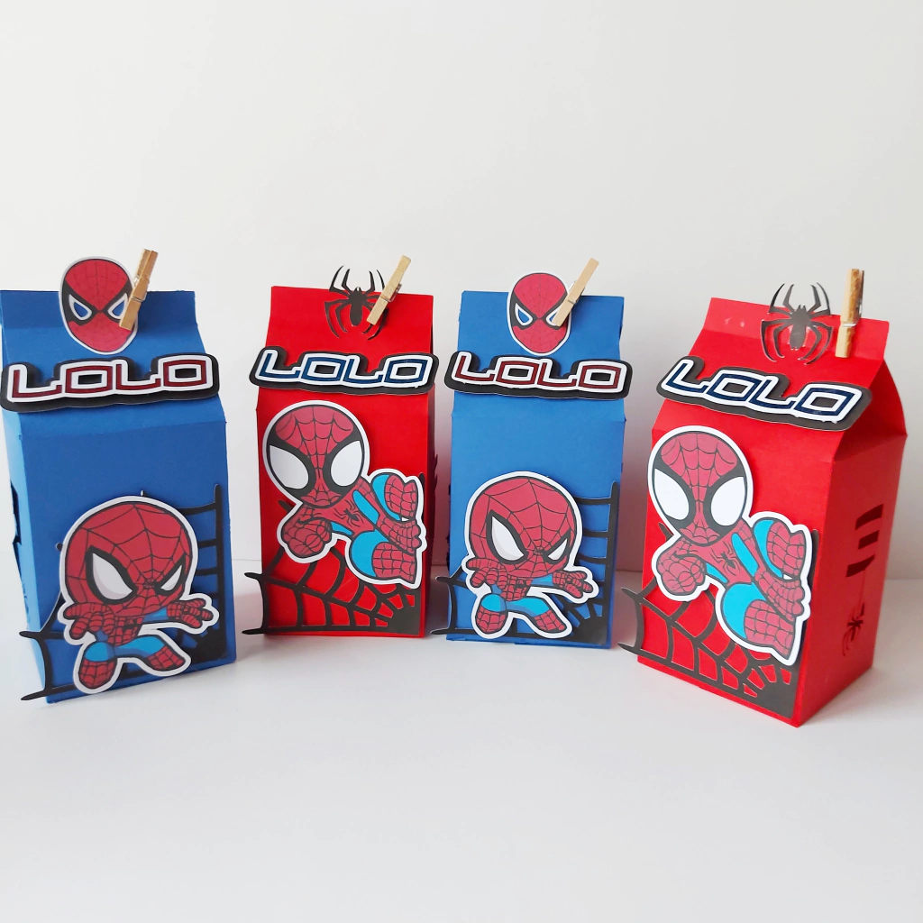 >> CAJAS MILK. Llevan apliques en frente, acorde a la temática elegida, y en frente superior inclinado con el NOMBRE (personalización) En laterales llevan calados con el número (AÑOS QUE CUMPLEN).