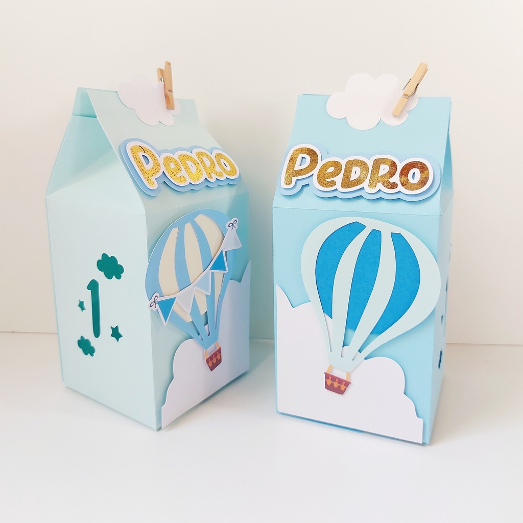 >> CAJAS MILK. Llevan apliques en frente, acorde a la temática elegida, y en frente superior inclinado con el NOMBRE (personalización) En laterales llevan calados con el número (AÑOS QUE CUMPLEN).