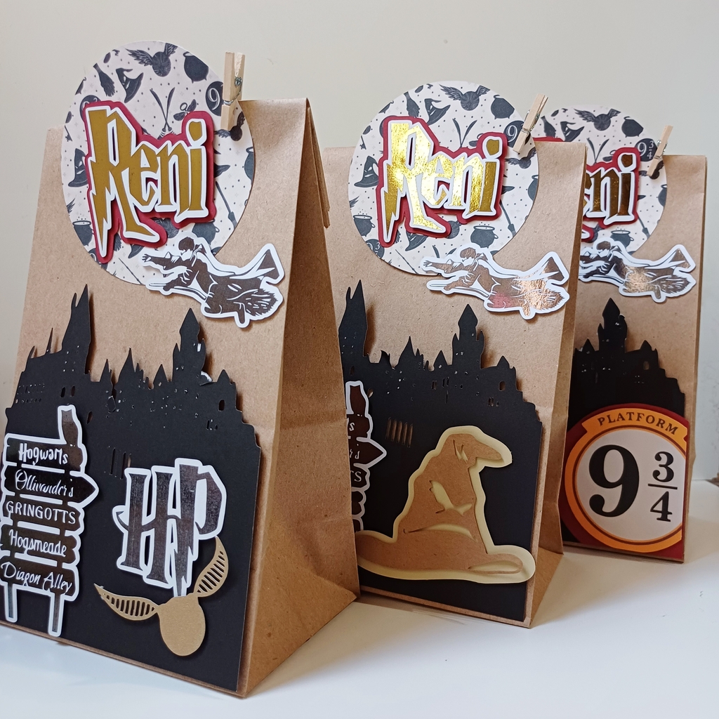 >> Las bolsitas decoradas miden aproximadamente 12 cm de ancho x 20 cm de alto, con un fuelle de 7 cm. Se interviene el frente con apliques temáticos, y en la parte superior lleva personalización y brochecito de madera.